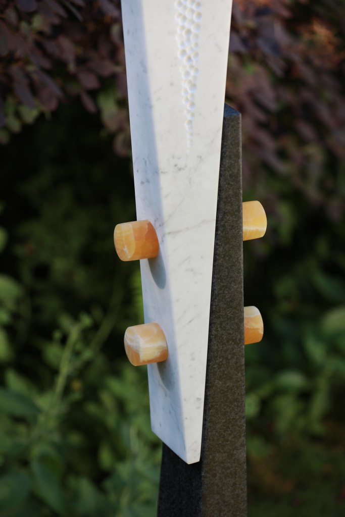 “Seedling” Marble on black granite and steel. Currently on display in Yountville, California. Height: 6 feet
